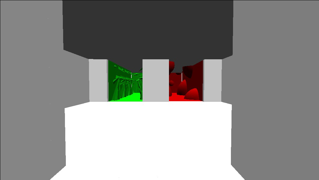 We developed a playable test environment to research the reactions of the player at different strategies of player guidance. This test environment was made of different test chambers. The following pictures show some of those chambers.