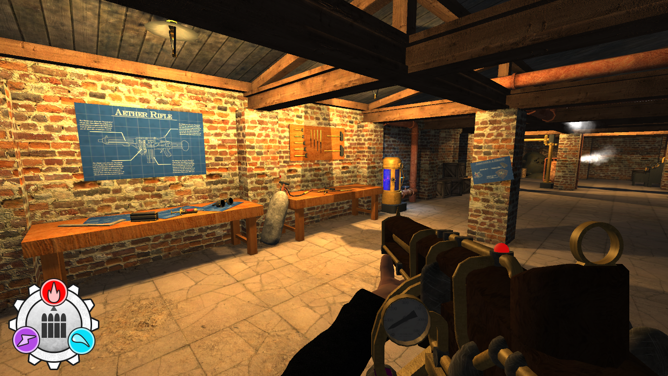The game is some kind of a first person shooter with elements of a first person puzzle game. The player has a rifle with elementary ammunition which can be switched. Elementary advantages and disadvantages against enemies need to be calculated. Some puzzles in the game world need to be solved with the right elementary ammunition.