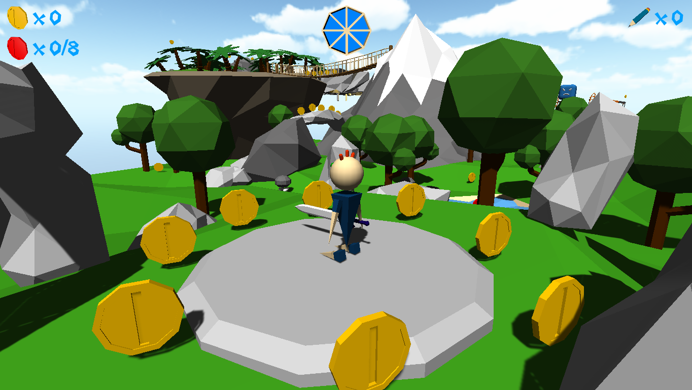 The game was inspired by Super Mario 64 and Zelda Ocarina of Time. The player controls a character in a third-person perspective. As in Super Mario 64, the player must complete small tasks to obtain pencils (equivalent to stars). To attack the enemies and to open passages, the player can use his sword.