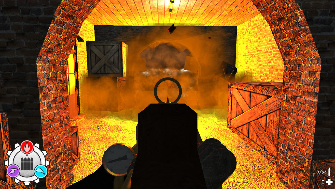 The game is some kind of a first person shooter with elements of a first person puzzle game. The player has a rifle with elementary ammunition which can be switched. Elementary advantages and disadvantages against enemies need to be calculated. Some puzzles in the game world need to be solved with the right elementary ammunition.