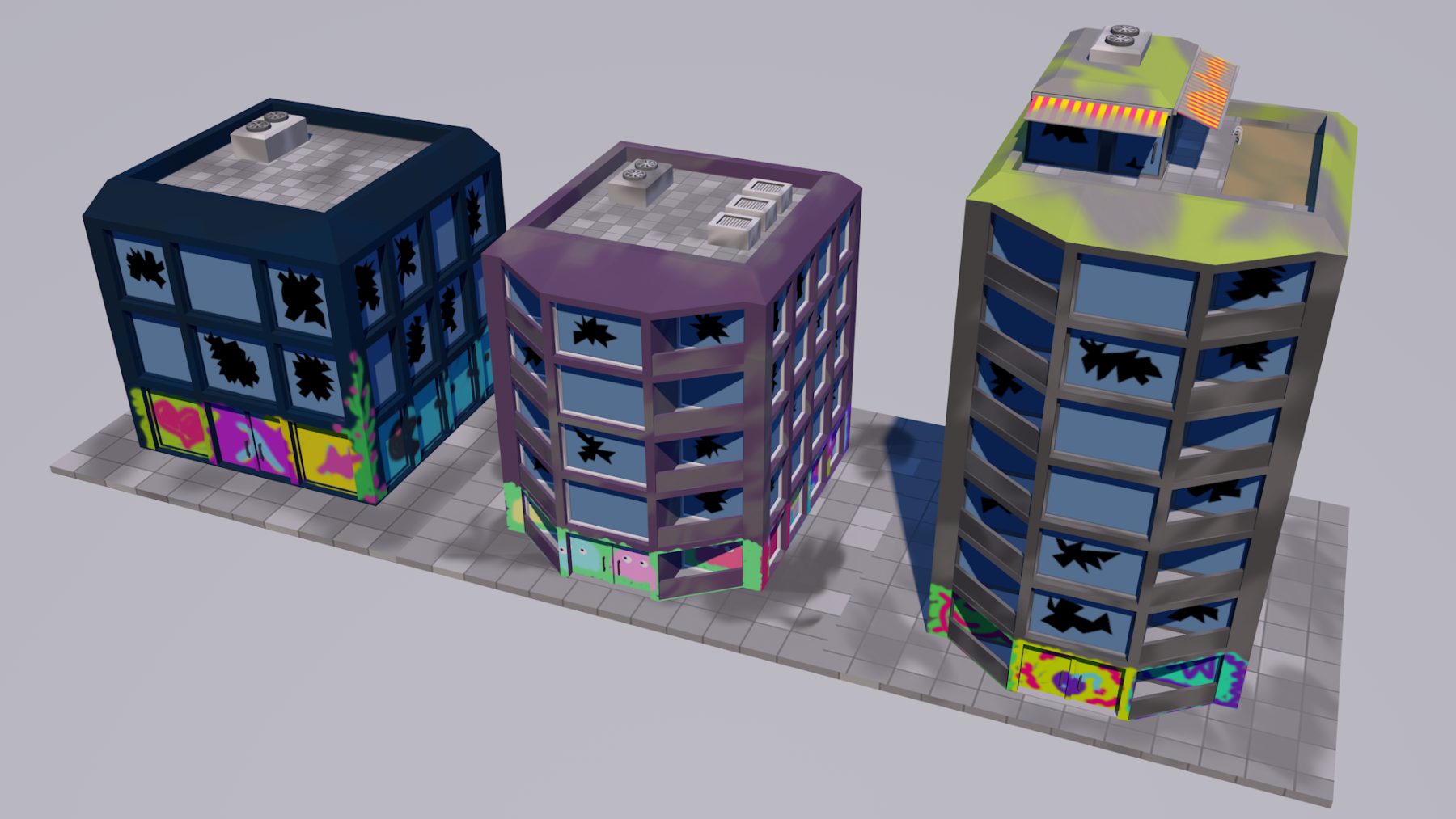 The game is a strategy game. Main goal of the game is to keep a given city safe. For this he can build different buildings. This led to the projects name Build Trust. Besides the programming of some of the mechanics I created the following assets for that project.